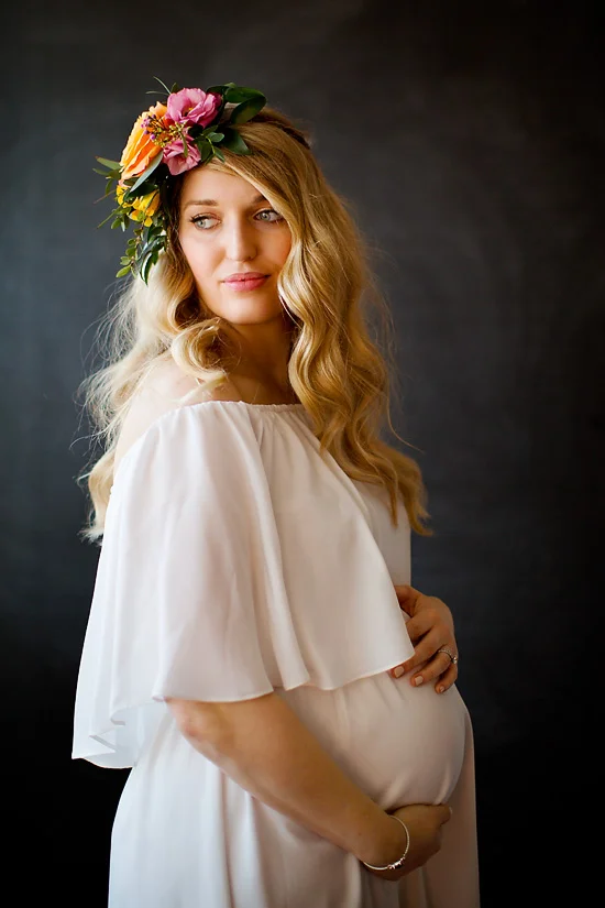 I love having pregnant mamas in my studio. I have been growing my collection of dresses but this mama to be had a couple of her own as well. Plus, she added in a gorgeous floral crown based on her wedding flowers. Jaime from Fleurish did a wonderful job on the floral crown(as always...she is just awesome at what she does).
